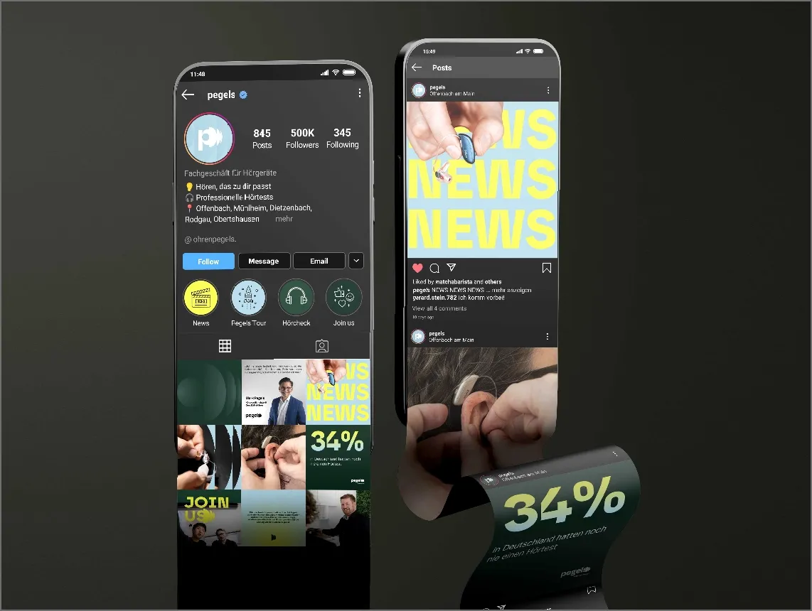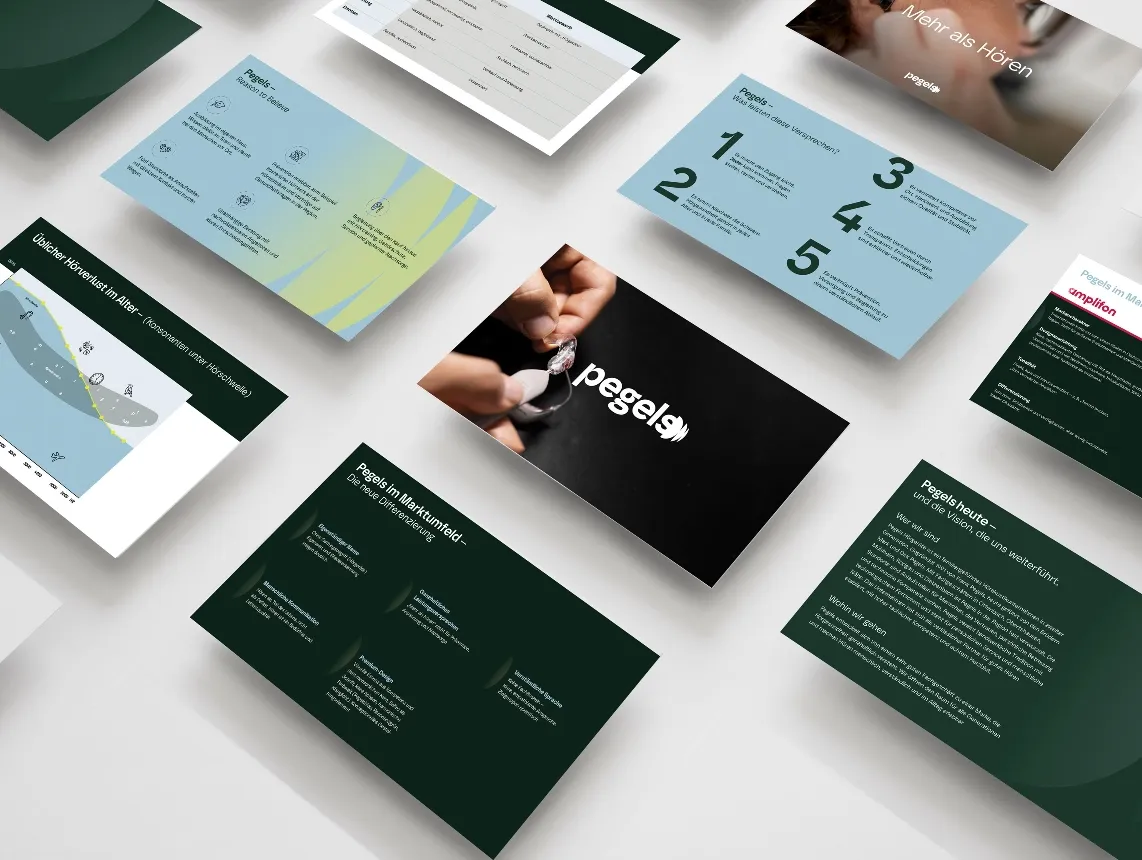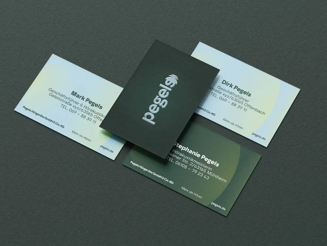 Pegels ist ein familiengeführtes Hörakustik-Unternehmen mit über 30 Jahren Präsenz im Raum Offenbach. Ausgangspunkt war die Entwicklung eines neuen Corporate Designs, das die gewachsene Geschichte von Pegels nicht ersetzt, sondern weiterträgt und bewusst weiter denkt. Dafür habe ich die Corporate Identity von Grund auf herausgearbeitet: Herkunft, Werte, Anspruch und Zukunftsvision klar definiert und in ein durchgängiges Markenkonzept übersetzt. Auf dieser Basis entstand ein konsistent konzipiertes Corporate Design, bei dem jede gestalterische Entscheidung bewusst getroffen wurde. Das Ergebnis ist ein Erscheinungsbild, das Vertrauen schafft, Qualität sichtbar macht und Pegels als moderne, menschliche Hörakustik-Marke positioniert – mit dem klaren Fokus auf den Menschen, auf Zuhören, Nähe und das Erleben von Hören als grundlegendes Bedürfnis, als selbstverständlicher Teil von Lebensqualität.